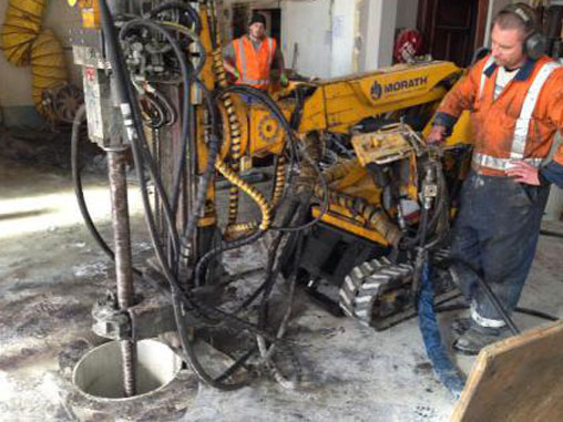 - All piles installed and tested through diameter 500mm core holes through existing slab