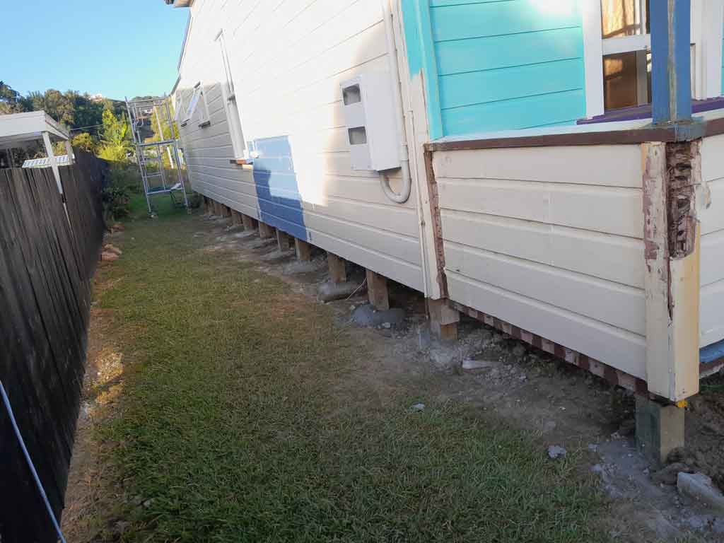 Job done by the team on River Road, Dargaville prior to the weather rolling through including the foundation relevelling and replacement of timber piles.